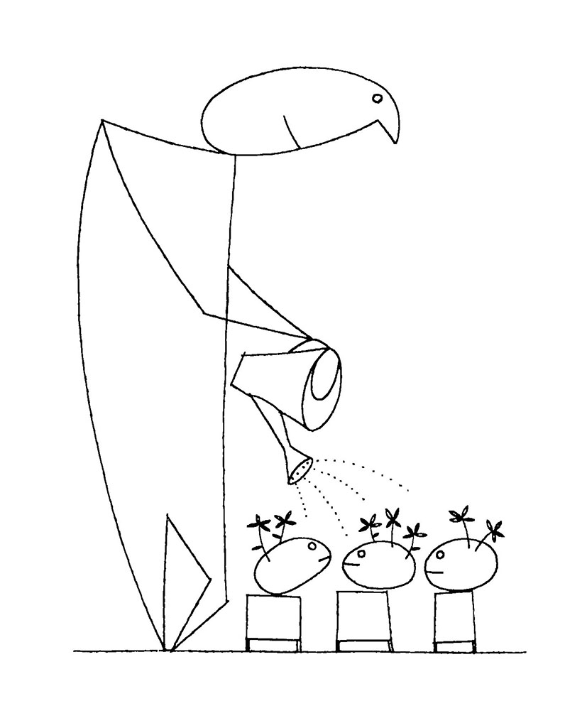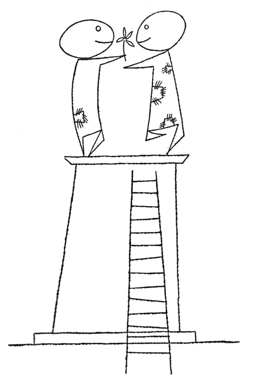 Człowiek z kwiatkiem, rys. Stefan Papp 1982
